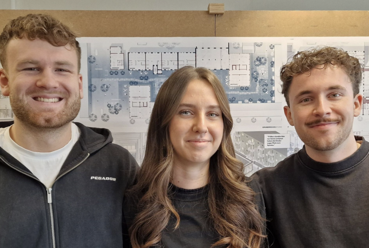 Für das von ihnen entwickelte »StadtPlanSpiel« erhielten Sophie Krieg, Sophia Reifenstuhl und Caio Luca Schopp im Bereich Städtebau den Sonderpreis des Ministeriums für Infrastruktur und Landesplanung des Landes Brandenburg. Im Zentrum des 171. AIV-Schinkel-Wettbewerbs 2026 stand das »Karree« – ein innerstädtisches Areal in Luckenwalde, eingebettet zwischen Bahnhof, ehemaliger Burg und Innenstadt. Es vereint Leerstände, brachliegende Industrieflächen, landschaftliche Potenziale und gut erschlossene Wohnlagen. Gesucht wurde ein Leitbild für ein zukunftsfähiges Modellquartier, das den Wandel Luckenwaldes aktiv und lustvoll mitgestaltet.