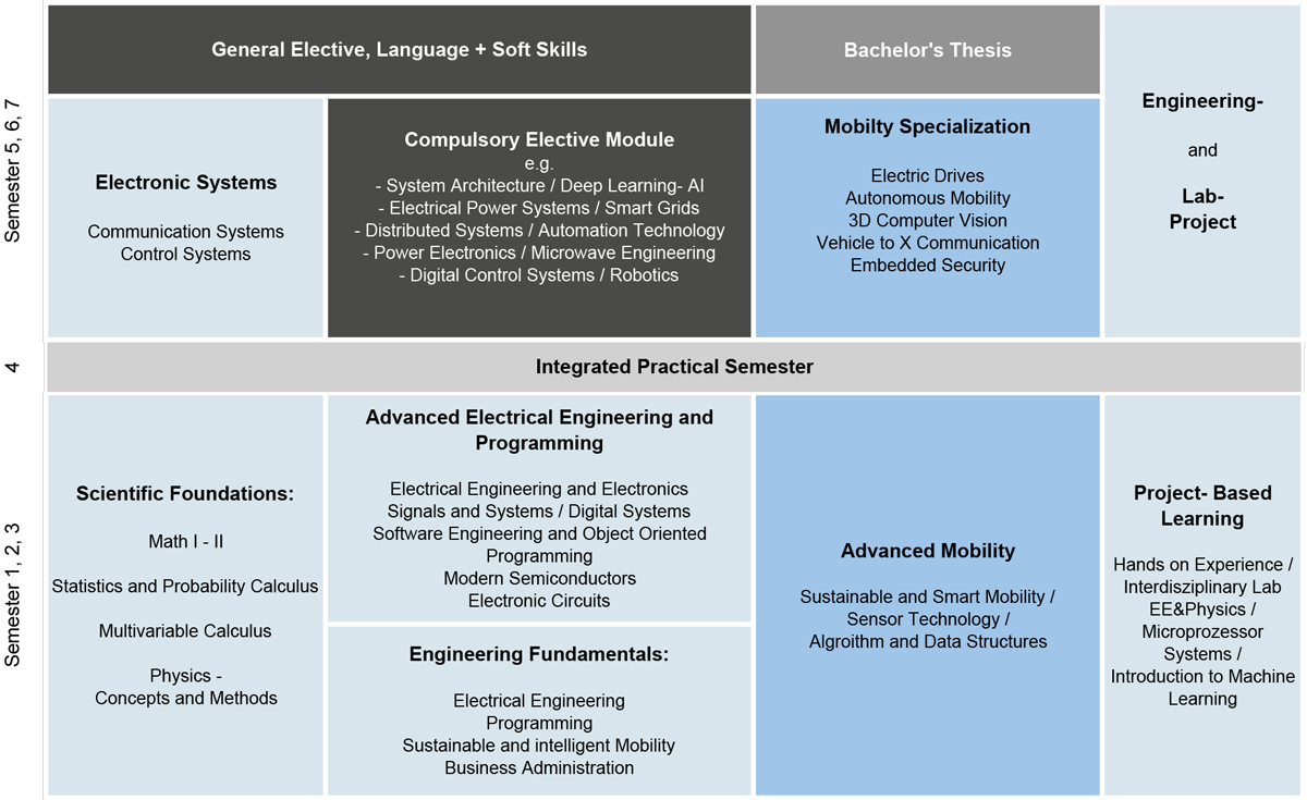 Main focus: Interdisciplinary competence profile based on the fundamentals of engineering and economics: Electrical and Electronic Systems, Information Technologies and AI, Sustainable Energy Systems and Management, Sustainable Global Value Networks