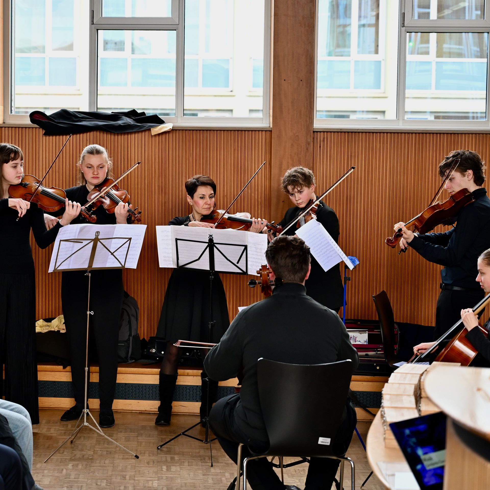 Im Anschluss würdigten die betreuenden Professor:innen ihre Master-Absolvent:innen mit persönlichen Worten und stellten ihre verschiedenen Arbeiten kurz vor. Als Drittprüferinnen konnten in diesem Semester die Architektinnen Aita Flury und Marion Kalmer gewonnen werden. Für die musikalische Begleitung der Feier sorgten die sieben Streicher:innen von Constantia Classica.